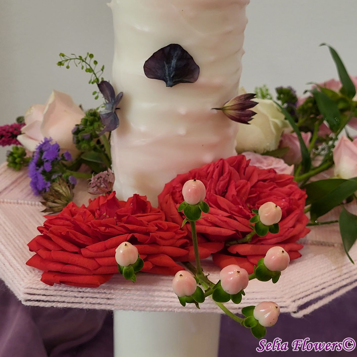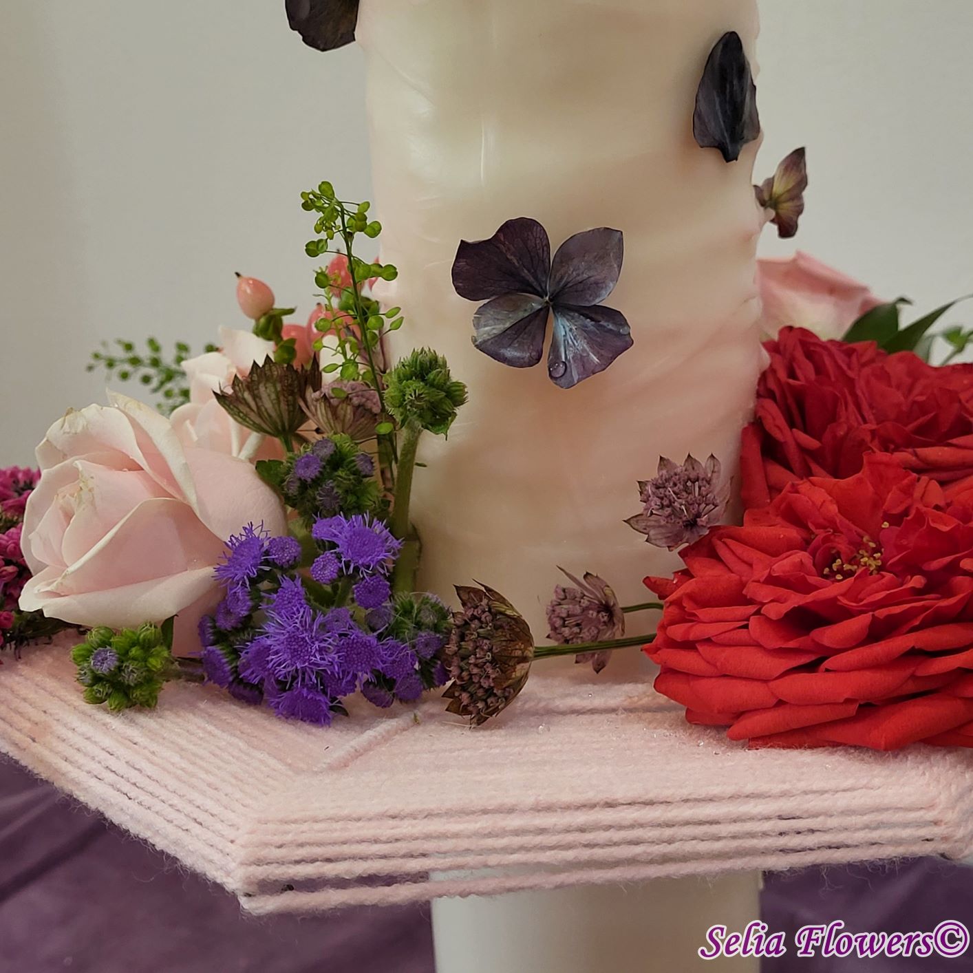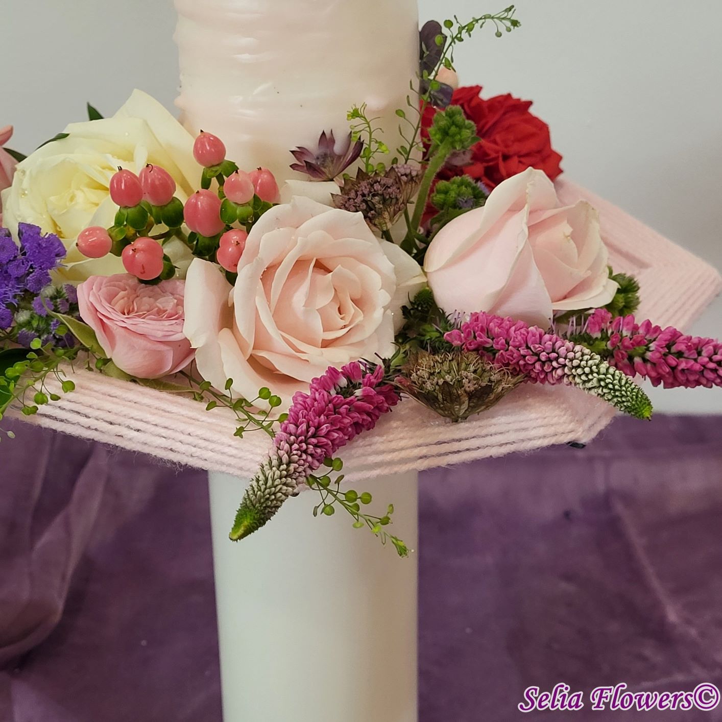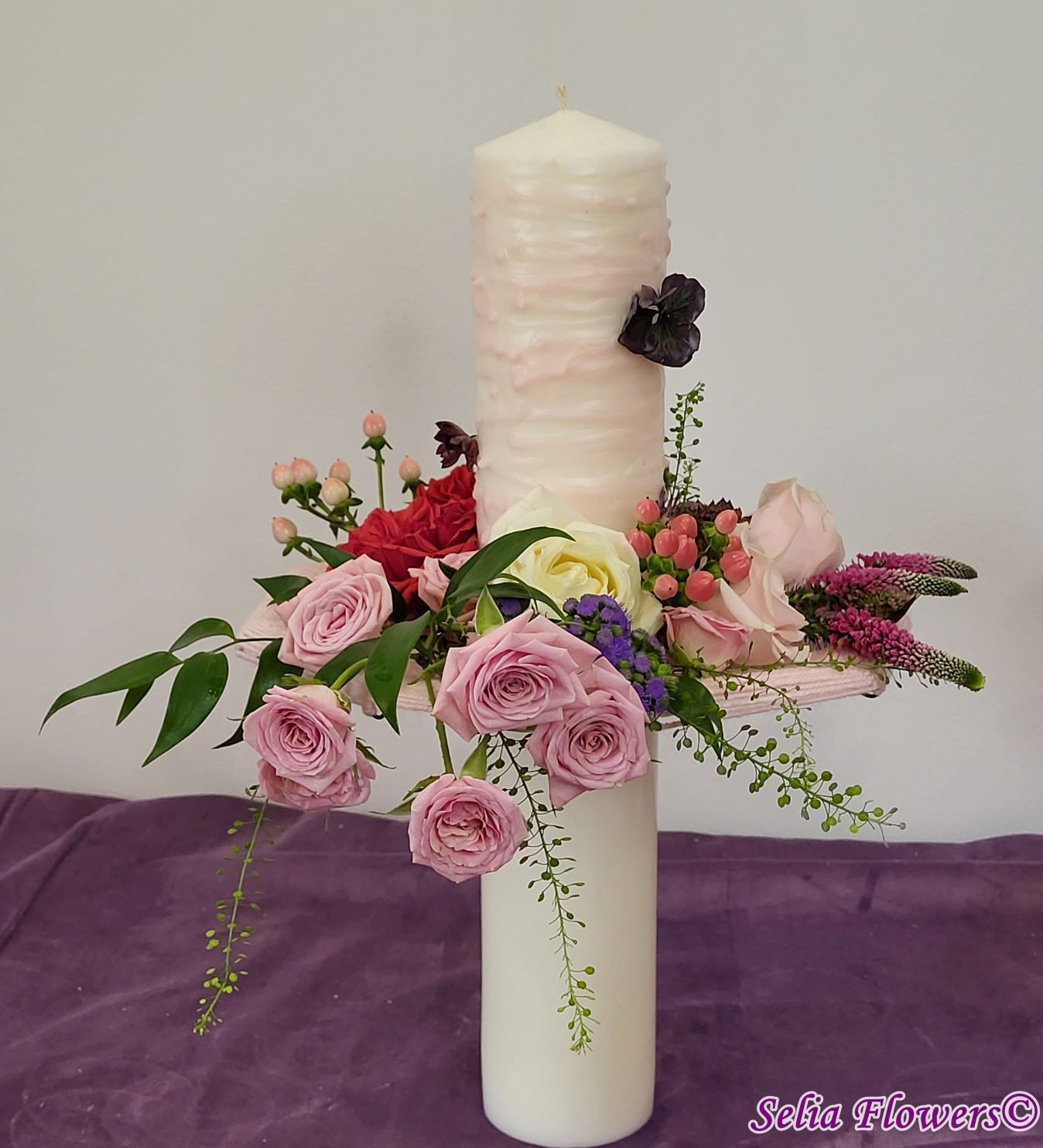Lumânari decorate cu flori naturale cu un design realizat pe structura spider lucrată manual în atelierul nostru.