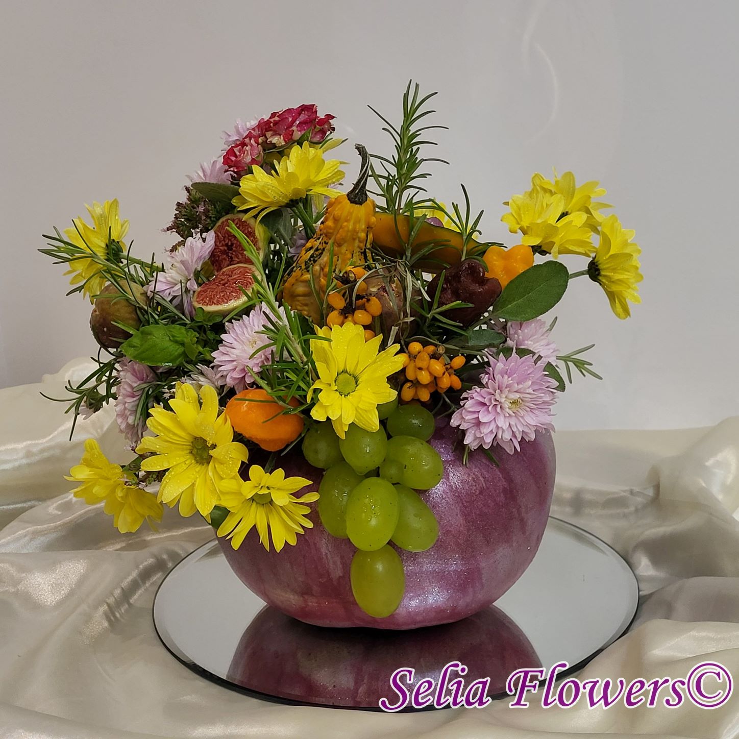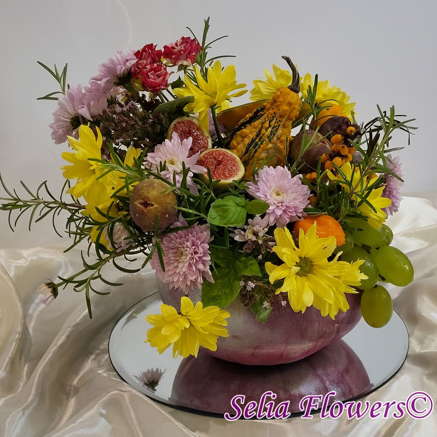 Este construit cu flori de toamnă, plante aromatice (rozmarin, salvie, busuioc și coriandru), fructe (smochine, struguri, cătină) și legume (minidovleac, ardei).