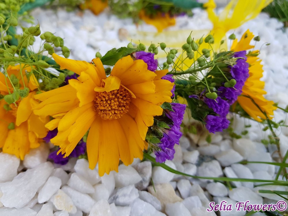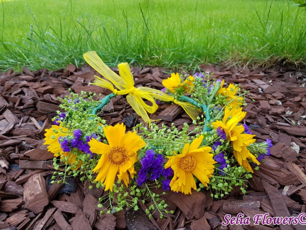 Coronita cu flori de galbenele si limonium