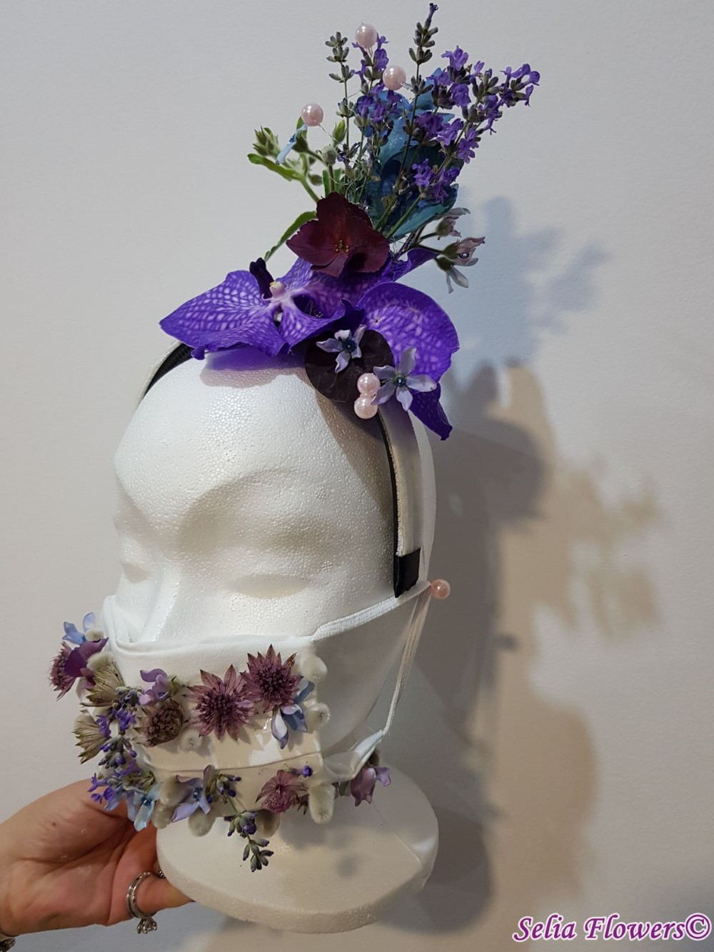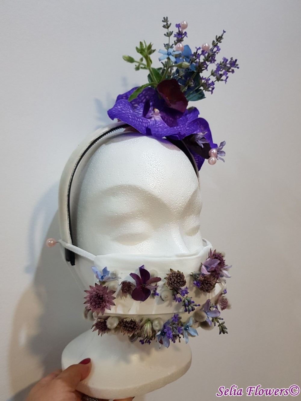 Masca, nelipsita acum de la evenimente este decorata si ea cu o parte din florile naturale utilizate la celelalte accesorii.