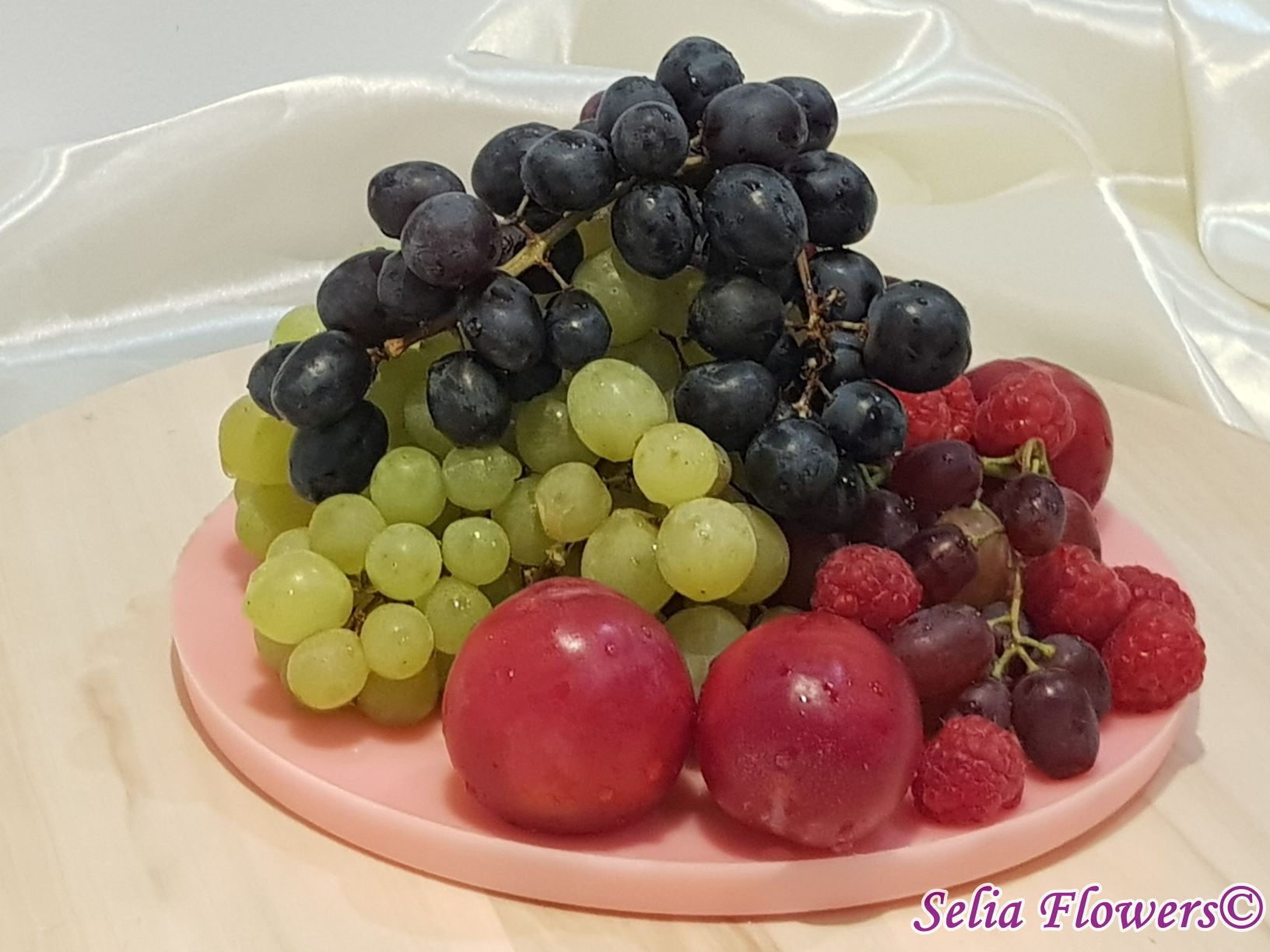 Diametrul platoului este de 22-23 cm și este un produs handmade realizat în atelierul floral Selia Flowers. Culoarea platoului se poate schimba în funcție de preferințele cromatice.