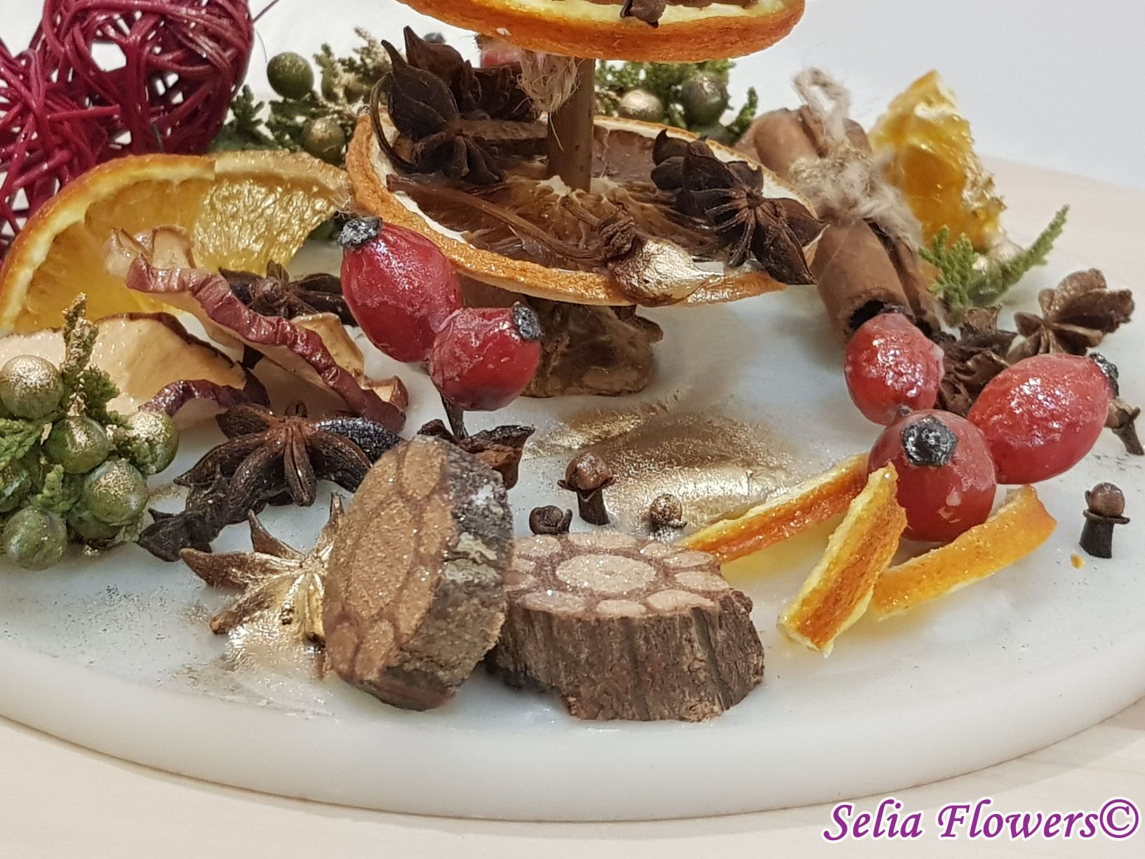 Un decor cu miresme de Craciun, un aranjament unicat, original si elegant care aduce Magia si Spiritul Craciunului in casa ta sau o idee originala de decor pentru masa festiva de sarbatori.